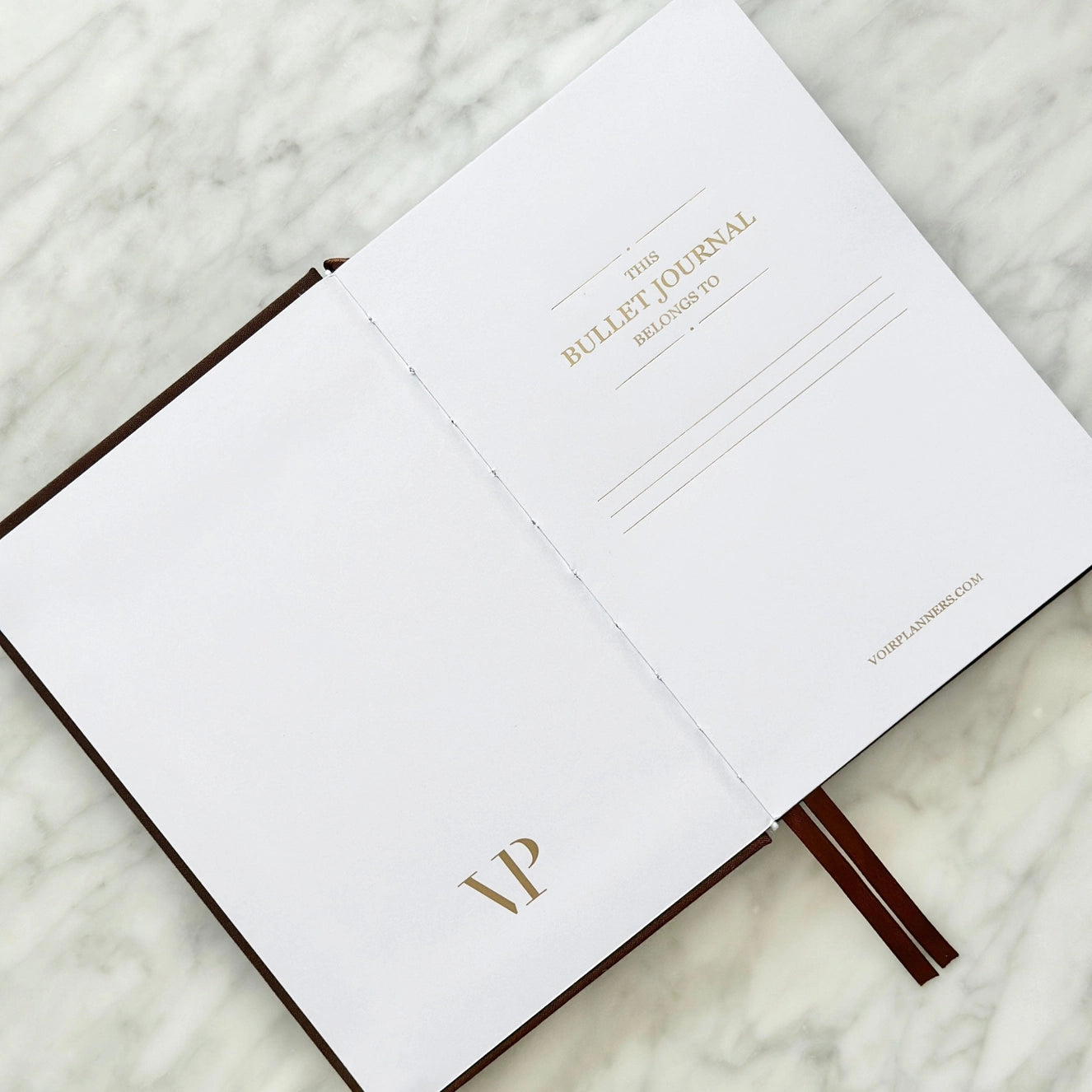 💛 Gold foil detailing on the interior title page reading “This Bullet Journal Belongs To” with lined space below